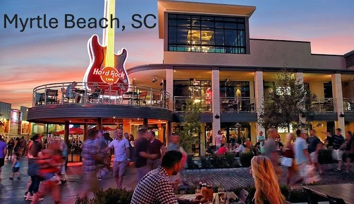 |To the South is Calabash, then Little River, next North Myrtle & South Myrtle Beaches and then Merles Inlet and so on to Charlestown SC about 2 hours.